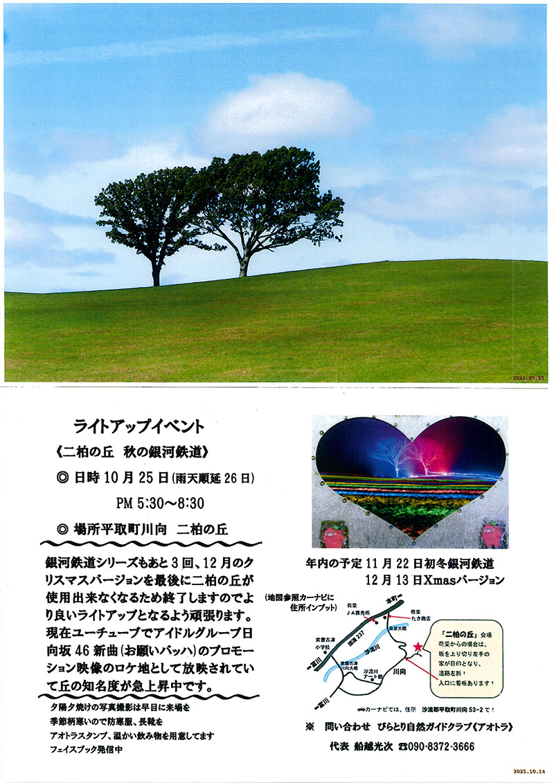 ぜひ、今年の秋は平取町「二柏の丘」で、あなただけの星空の物語を見つけてください。